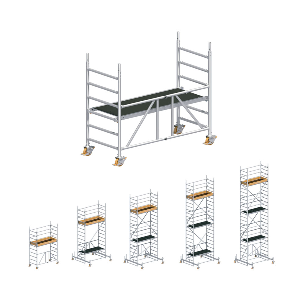 Las plataformas de trabajo móviles son fabricadas en aluminio de alta calidad, resistentes a condiciones climáticas como lluvia, nieve y radiación UV. Gracias a su marco plegable, son fáciles de transportar y almacenar cuando no se utilizan.